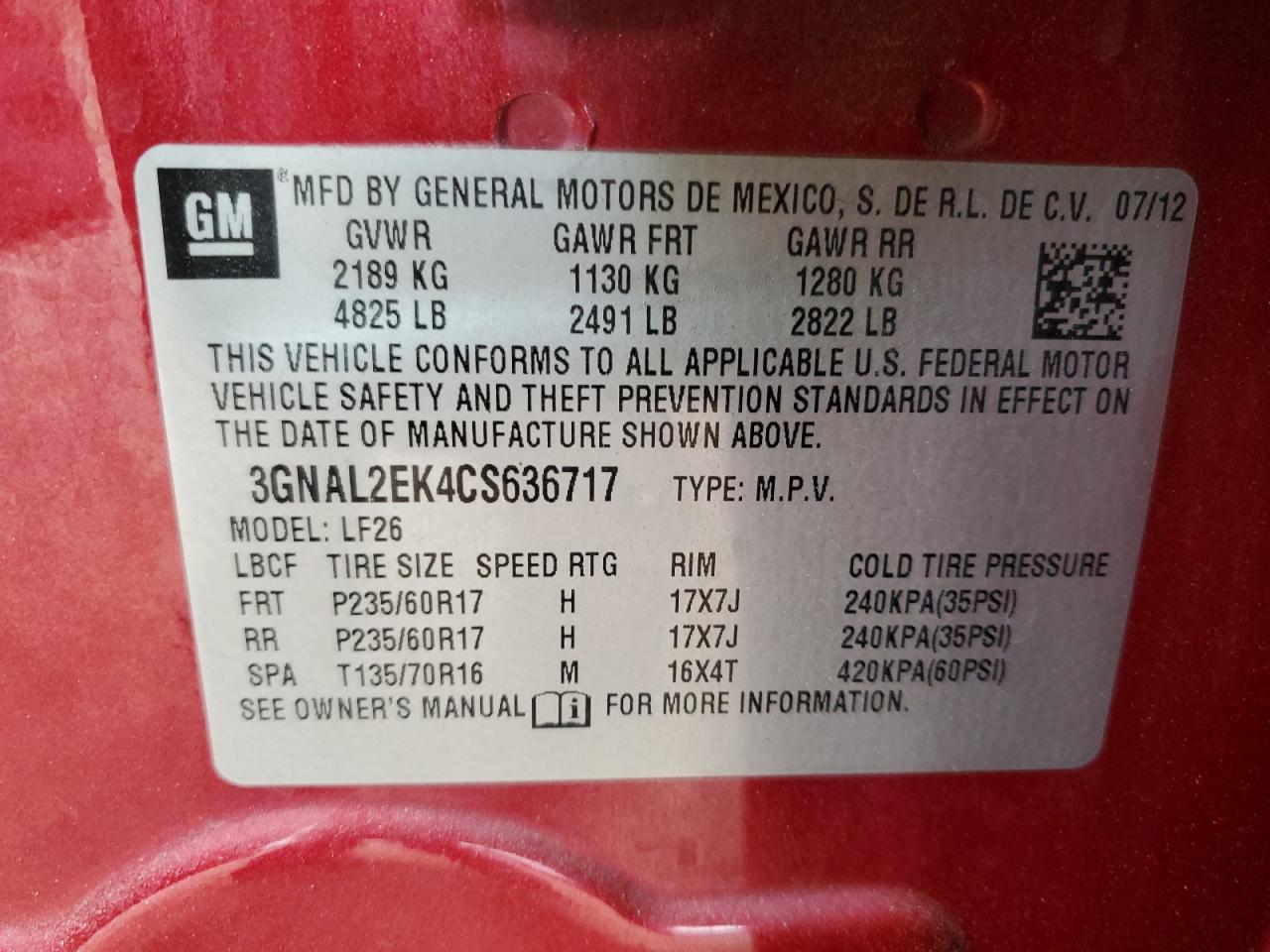 У нас вы можете заказать Chevrolet Captiva I 2012 года выпуска с двигателем 2.4l 4 Гибкий выбор топлива, привод Передний, с коробкой передач Автоматическая, пробег 111300, стоимость на аукционе 0$. Автомобиль находится в США и доступен Под заказ с льготной растоможкой и недорогой доставкой морским транспортом.